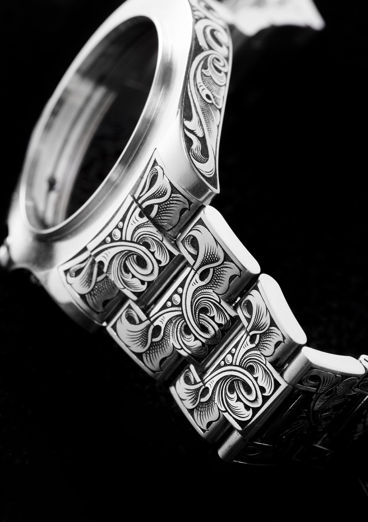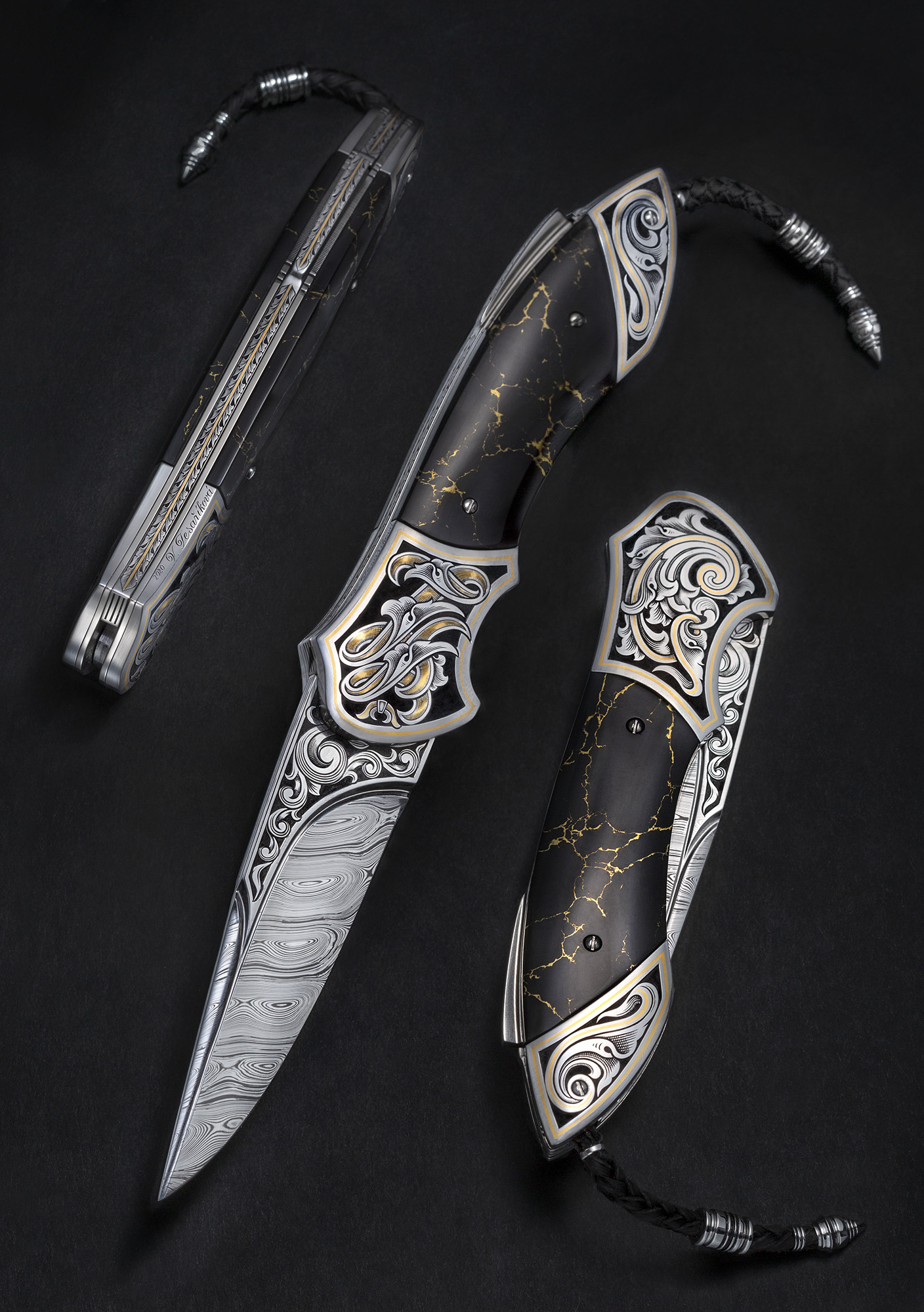 Her engravings adorn knives, jewelry, and watches. Each engraving is created under a microscope to ensure that every detail is perfect.